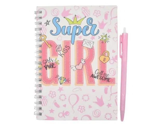 Libreta rayada con lapicera retráctil.Medidas: 17x12cm.38 hojas rayadas.Lapicera retráctil de tinta azul. En bolsa.